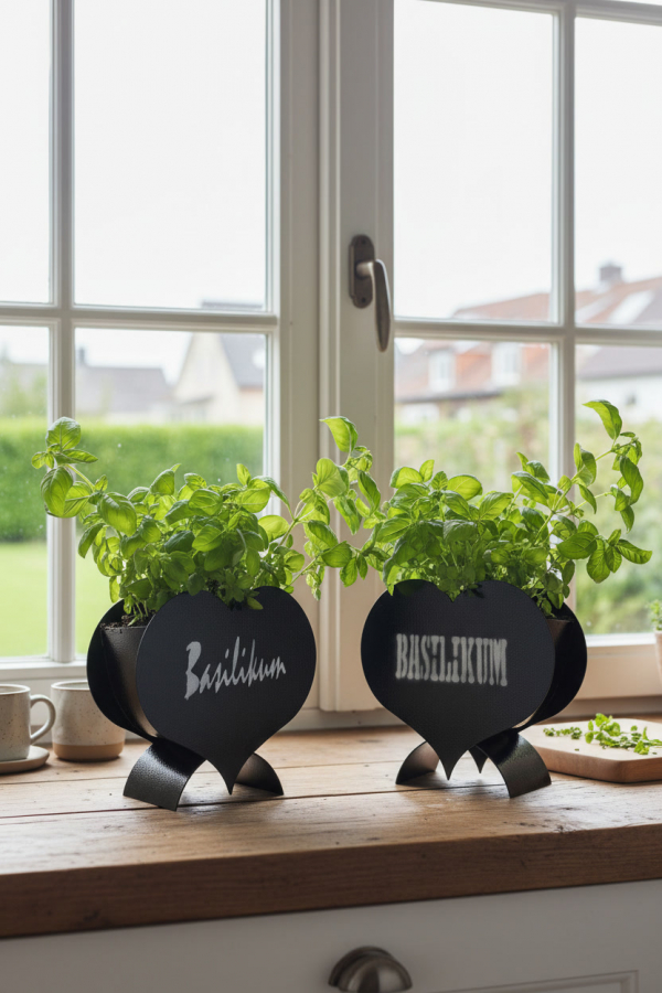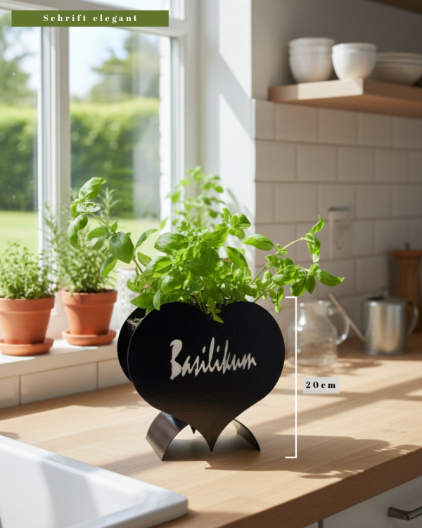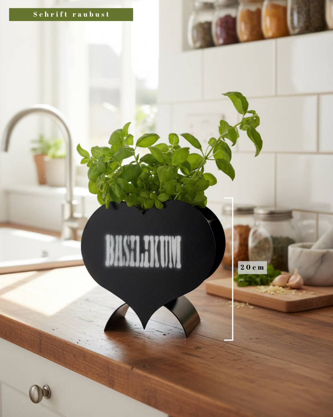 Die besondere Herzform macht es zu einem echten Blickfang: weich geschwungene Linien treffen auf einen modernen, stabilen Standfuß. Dadurch wird das Kräuterherz nicht nur zu einem praktischen Pflanzgefäß, sondern auch zu einem stilvollen Dekoelement für Küche, Balkon oder Garten.