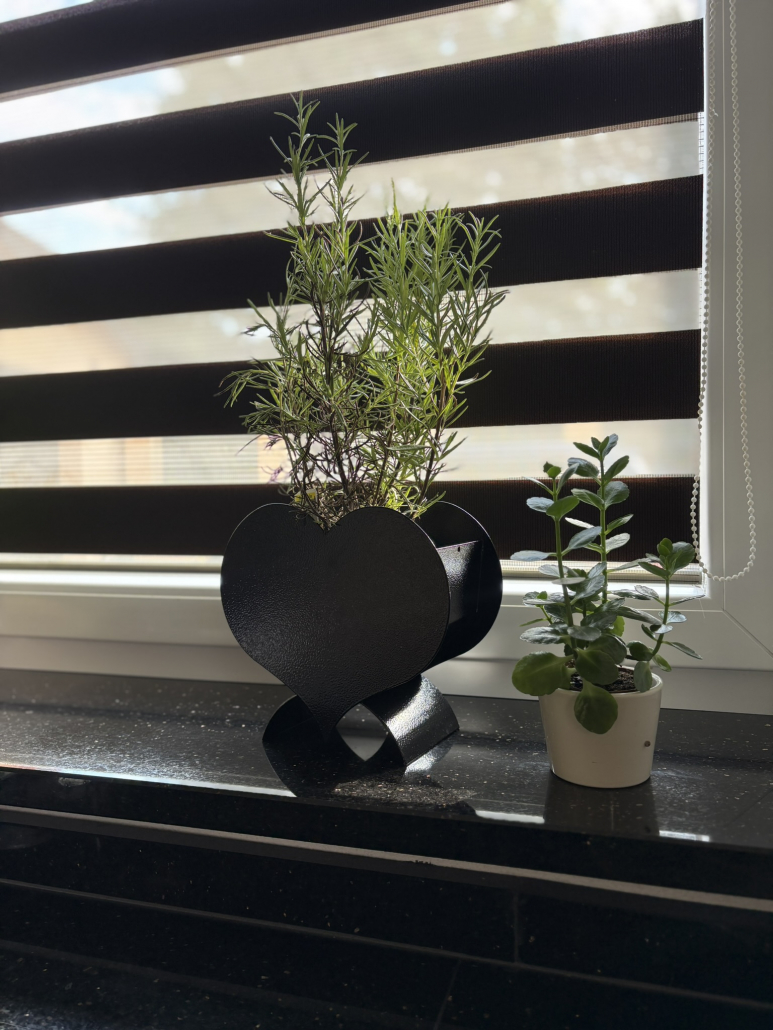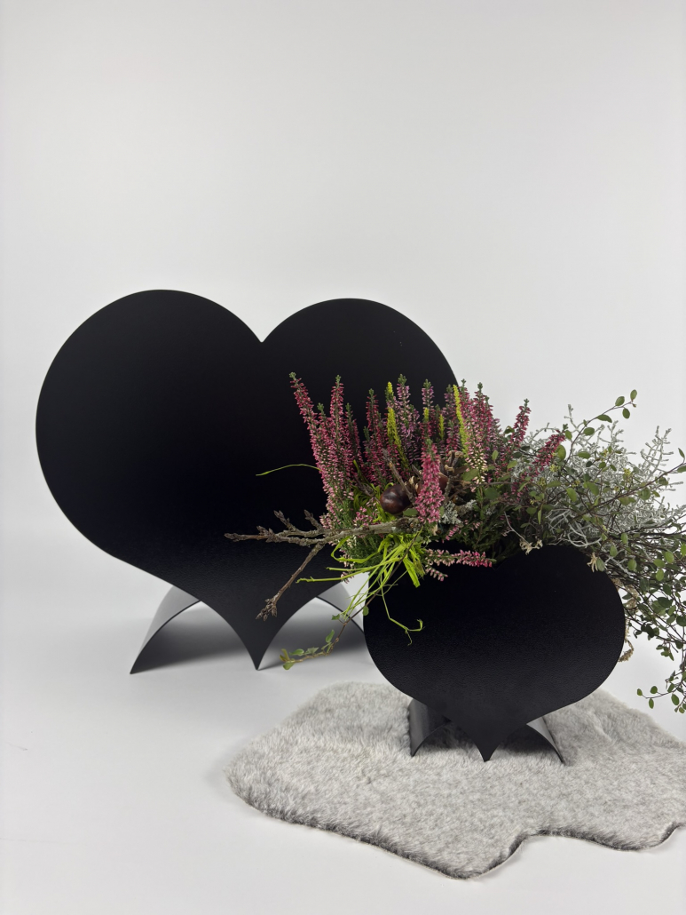 Der herzförmige Pflanzentopf aus hochwertigem, pulverbeschichtetem Metall kombiniert elegante Optik mit langlebiger Stabilität. Ideal für Innen- und Außenbereiche, setzt er Blumen und Pflanzen stilvoll in Szene. Hergestellt in Deutschland für höchste Qualität und edles Design.