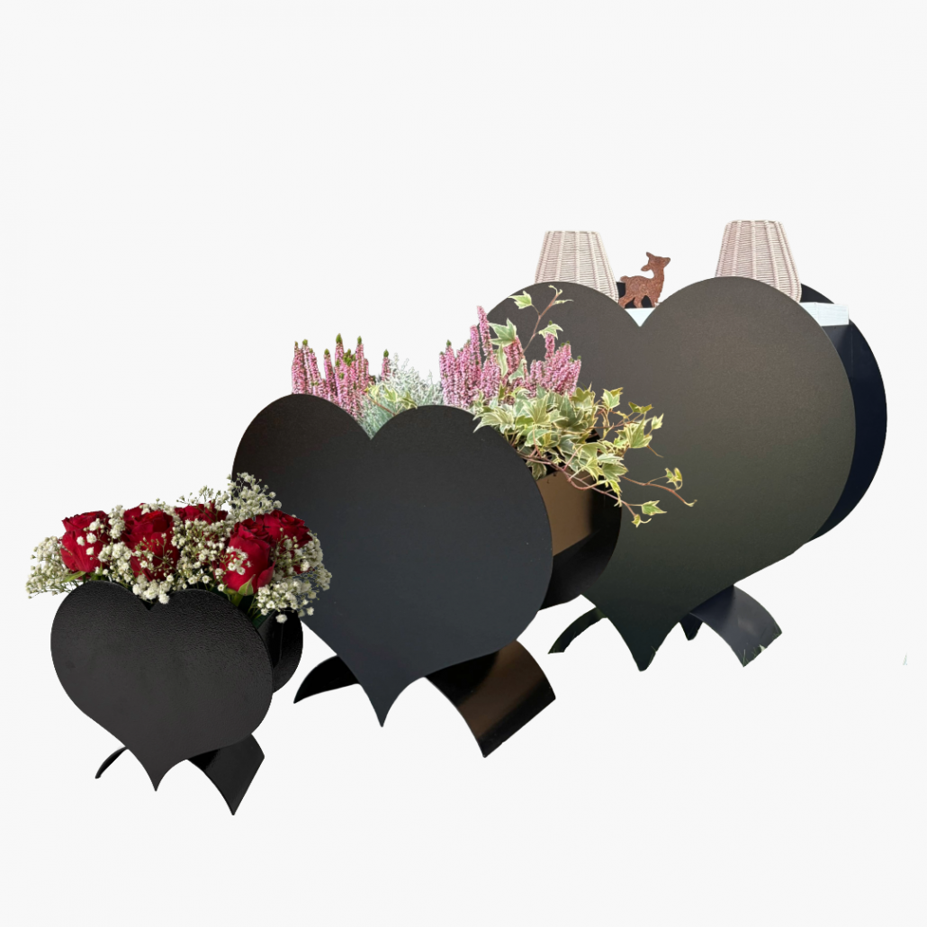 Ich habe meine Sommerblumen in einen 40 cm langen Kunstoffblumenkasten (mit Untersetzer) gepflanzt und in das Herz gestellt. Passt super.